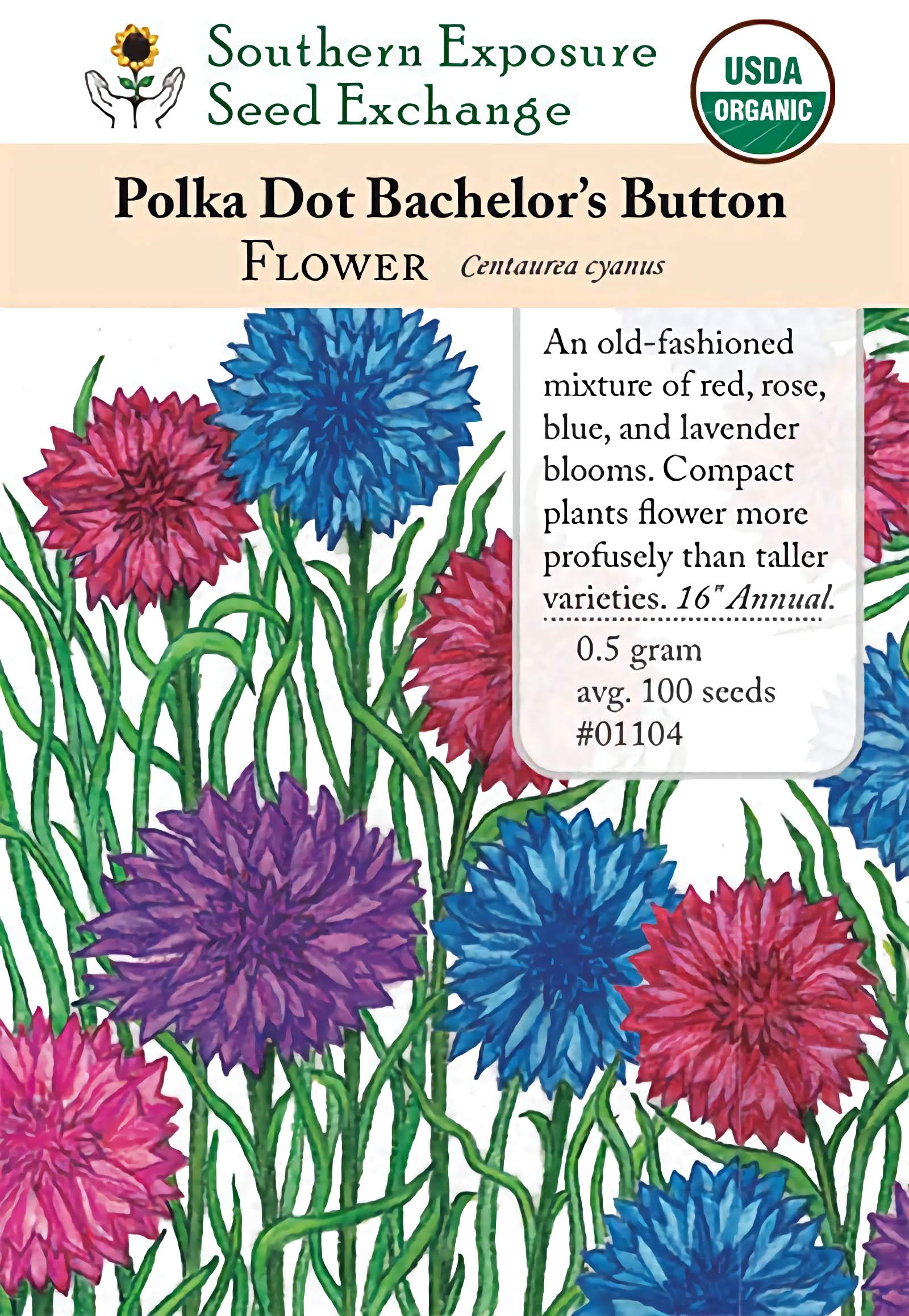(Centaurea cyanus) Polka Dot is a mixture of red, rose, blue, and lavender shades. Compact plants are 16 in. tall and flower more profusely than taller varieties.