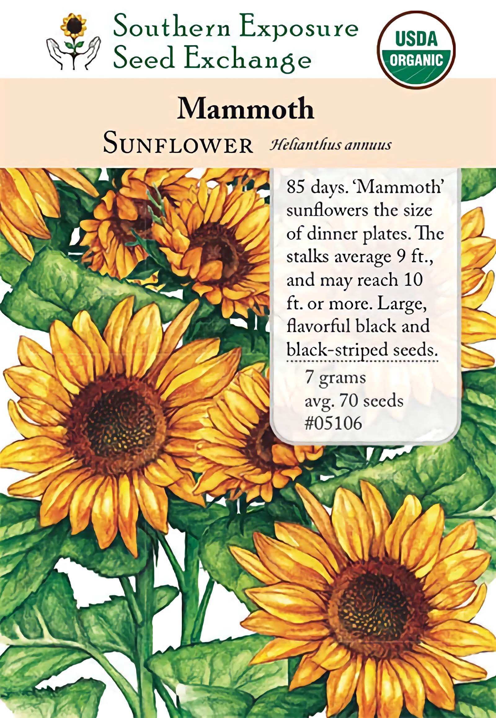 71 days. Stalks average 9 ft. tall and may reach a height of 10 ft. or more. Heads average 11 in. across, with some reaching 14 in. or more when plants are well grown. Gray and black seeds. Space 18 in. apart.