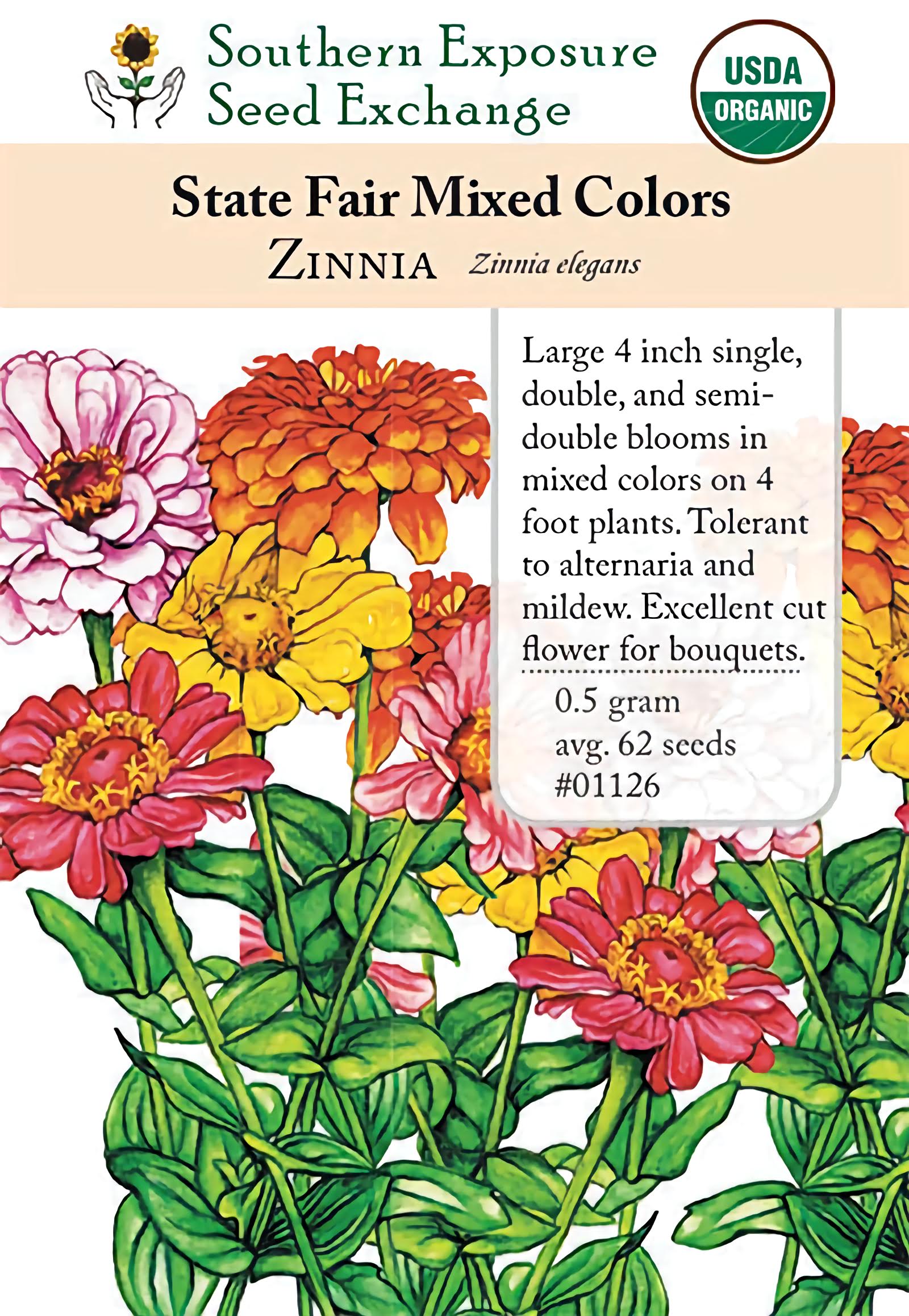 (Zinnia elegans) Large 4 in. single, double and semi-double blooms in mixed colors on 48 in. tall plants. Tolerant to alternaria and mildew. A wonderful cut flower for bouquets. Popular variety.