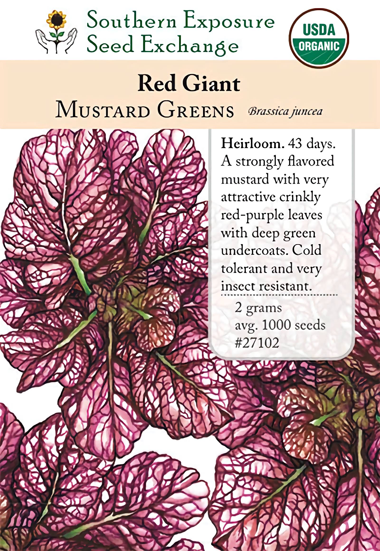 (B. juncea) 43 days. A beautiful mustard from Japan, Red Giant has well-savoyed leaves, predominately reddish-purple with an undercoat of deep green. Good cold tolerance and strong mustard flavor. More insect-resistant than other varieties.