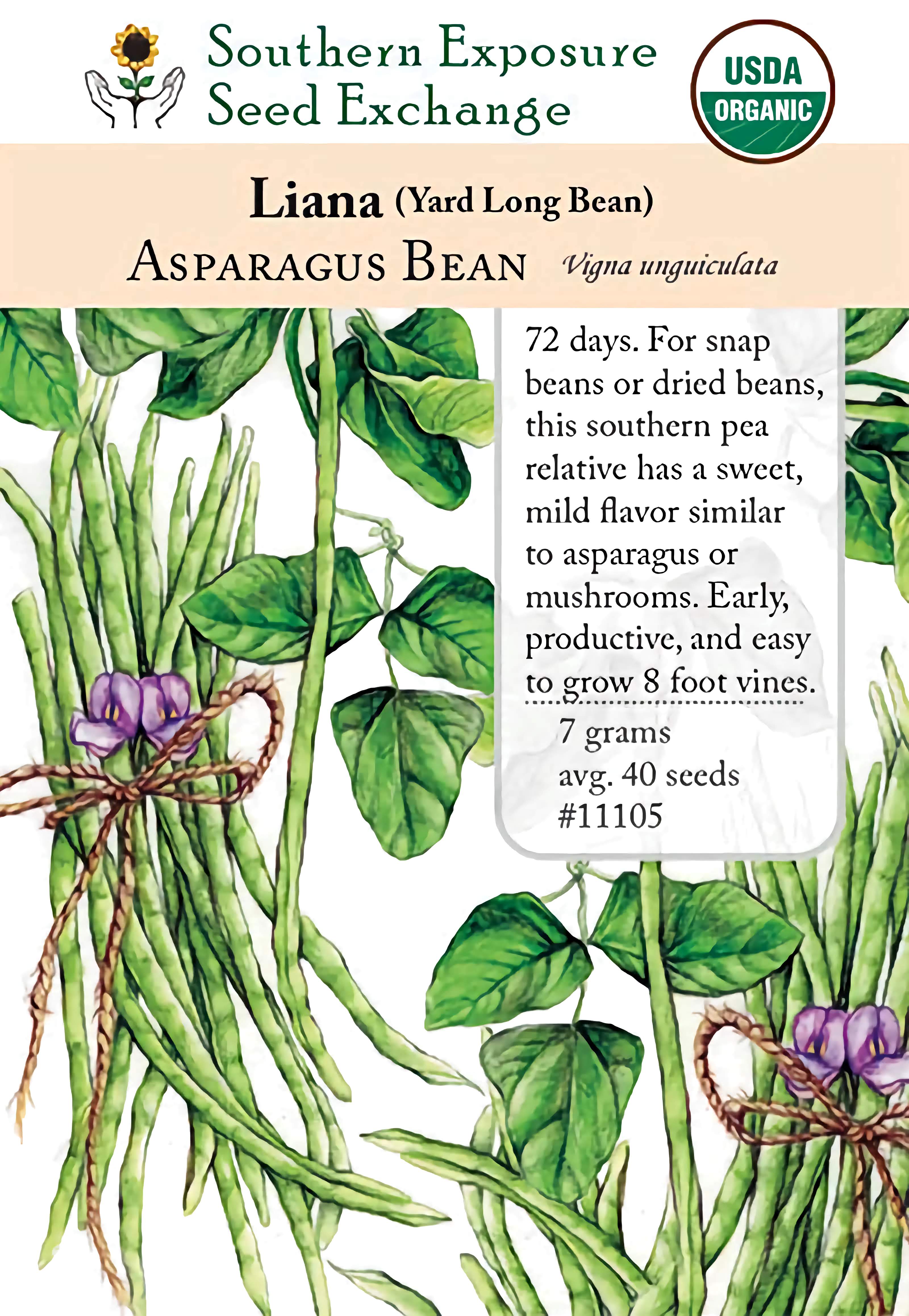 52 days One of the earliest maturing asparagus beans. Like most black-seeded varieties it does well in the North and the South. Since it is day-neutral, in the South it can be planted for early market sales, late for a fall harvest, or year-round in the greenhouse. Green pods up to 23 in. long, but are best picked at 18 in. or smaller (less than pencil-width). A market favorite.
