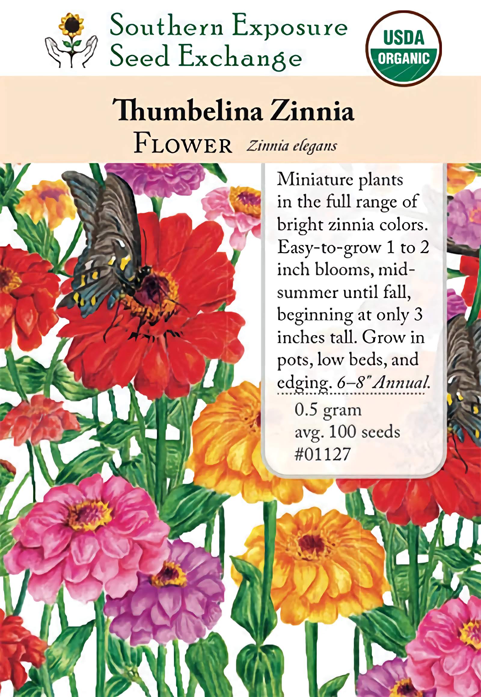 Dwarf 6-8" tall zinnia with bright-colored 1-1/4 to 2" flowers. Full range of zinnia colors for front of borders. Blooms all season here in Virginia.